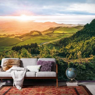 Fototapeta zalesiony krajobraz zielonymIniebieskim - 400 x 250 cm - SANDERS & SANDERS