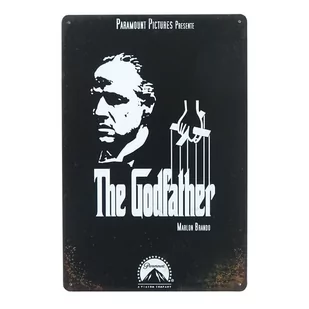 Tabliczka dekoracyjna metalowa THE GODFATHER 2 Tabliczka dekoracyjna wykonana z metalu. Plakat został wykonany z najwyższej jakości materiału oraz dodatkowo został pokryty lakierem chroniącym przed otarciami. Stabilne przytwierdzenie tabliczki umożliwiają małe otwory umiejscowione w każdym rogu produktu. Zaokrąglone rogi gwarantują bezpieczeństwo użytkowania. Subtelne oznaki postarzania widoczne na powierzchni tabliczki stalowej dodają charakteru retro.