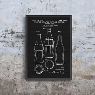 Plakat retro z motywem Projekt butelki coca-cola Patent USA to propozycja dla właścicieli warsztatów, sklepów, a także innych firm związanych z branżą widocznego na rysunku patentu. Wybierając taką ozdobę, można wnieść do biura czy lokalu tematyczny klimat, który oddziałuje również na klienta.