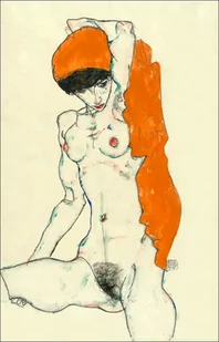 Standing Nude with Orange Drapery (recto) Study of Nude with Arms Raised (verso), Egon Schiele - plakat Wymiar do wyboru: 21x29,7 cm