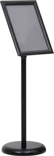 Ten stojak na plakaty jest w pełni regulowany, aby spełnić różne wymagania. Wykonany z wytrzymałej i lekkiej ramy ze stopu aluminium, stojak informacyjny oferuje miejsce na 1 standardowy plakat A4. Plakat można elastycznie ustawić pod dowolnym kątem. Przezroczysta folia PVC chroni plakat graficzny przed kurzem i odciskami palców oraz zapewnia dobrą widoczność plakatów. System zatrzaskowy sprawia, że każdy plakat można szybko zamontować na tym stojaku.