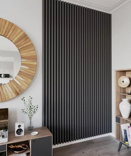 Dzięki wzornikowi możesz dokładnie ocenić odcień i strukturę materiału, co pozwoli na świadome dopasowanie produktu do aranżacji wnętrza. Wzornik kolorów możesz zamówić tutaj. Cechy produktu Właściwości akustyczne Dzięki swojej specjalnej konstrukcji i materiałom, lamele posiadają właściwości wygłuszające, które skutecznie redukują niepożądane dźwięki i echo. Doskonale sprawdzają się w pomieszczeniach, gdzie istotna jest akustyka, takich jak sypialnie, kina domowe oraz pomieszczenia studyjne, gdzie precyzja dźwięku jest kluczowa. Właściwości optyczne Pionowa forma lameli LD sprawia, że optycznie wydłużają i powiększają przestrzeń, nadając wnętrzom wrażenie większej wysokości i przestronności.