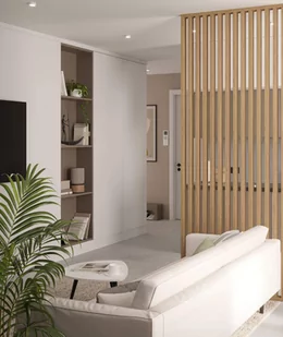 Rozstaw ■ Odstęp między lamelami: 5 cm Waga ■ waga jednego lamela to: 4,25 kg Zastosowanie Wnętrza, które zachwycają Lamelami dwustronnymi czterostronnie klejonymi można rozdzielić pomieszczenia stosując tzw. ściankę ażurową. Takie rozwiązanie nie blokuje w 100% światła dzieląc przestrzeń w pomieszczeniu dając światłu naturalnemu dostęp do drugiej części pomieszczenia.