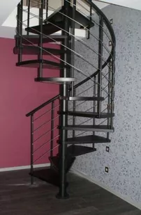 Schody kręcone, spiralne DUDA model Venecja 01 170 cm - 14 elementów Zestaw schodów spiralnych przystosowanych do średnicy otworu w stropie o wartości 180 cm. Elementy wykonano z litego drewna (kolor do wyboru z palety barw producenta) oraz stali malowanej proszkowo w kolorze czarny mat struktura. Można montować je samodzielnie, lecz producent udostępnia również usługę montażową za dopłatą. Oferowane schody kręcone pasują do dwóch rodzajów otworów w stropie i zależnie od nich mają różne podesty. W otworach okrągłych pasują podesty trójkątne.
