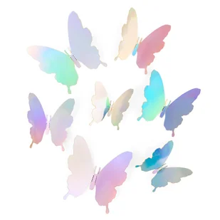 Naklejki na ścianę 3D motylki holo srebrne 12szt Ozdobne naklejki 3D na ścianę w kształcie motyli to wyjątkowy sposób, aby wprowadzić urok i subtelność do ka...
