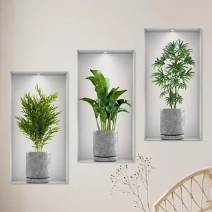 Wysokiej jakości materiał: Naklejki ścienne wykonane są z bezpiecznego i nietoksycznego materiału PVC, który jest nie tylko odporny na zużycie i wodę, ale także blaknięcie, pękanie i odkształcenia. Idealnie nadają się do dekoracji ścian w domu, maskując niedoskonałości i tworząc świeży i naturalny klimat. Realistyczny efekt 3D: Ta naklejka ścienna wykorzystuje realistyczną fakturę 3D i cienie, zapewniając żywy i wyrazisty efekt. Bez zielonych roślin poczujesz się świeżo i elegancko, niczym na łonie natury. To świetny sposób na udekorowanie pustych ścian i dodanie odrobiny naturalnego piękna.