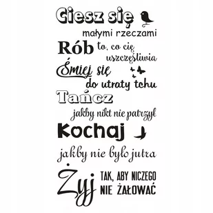 Przedmiotem sprzedaży jest naklejka ścienna z folii matowej, wycięta po obrysie, nie posiadająca tła: Napis na ścianę naklejka Ciesz się małymi. . . 283 Cena Kup Teraz dotyczy arkusza o rozmiarze: wys. 200 cm x szer. 100 cm O naszych naklejkach:
