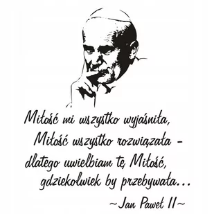 Przedmiotem sprzedaży jest naklejka ścienna z folii matowej, wycięta po obrysie, nie posiadająca tła: Napis na ścianę naklejka Papież Jan Paweł II - 269 Cena Kup Teraz dotyczy arkusza o rozmiarze: wys. 144 cm x szer. 120 cm O naszych naklejkach: Wykonane są one z wytrzymałej, wysokojakościowej, samoprzylepnej matowej folii winylowej.