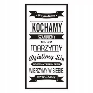 Przedmiotem sprzedaży jest naklejka ścienna z folii matowej, wycięta po obrysie, nie posiadająca tła: Napis na ścianę naklejka - W tym domu kochamy 175 Cena Kup Teraz dotyczy arkusza o rozmiarze: wys. 240 cm x szer. 120 cm O naszych naklejkach: Wykonane są one z wytrzymałej, wysokojakościowej, samoprzylepnej matowej folii winylowej.