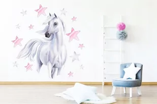 Piękny pastelowy koń, biały koń - naklejka na ścianę naklejka jest matowa Do paczki dołączamy INSTRUKCJĘ KLEJENIA, ułatwiającą aplikację naklejki. PRODUCENT: Joker Agencja Reklamowa (naklejki drukujemy na własnych ploterach, nie sprowadzamy ich z Chin) Kod produktu: KUC_1101 Każdy element wzoru jest wycięty po obrysie osobno i nie ma tła. Rozmiar całego wzoru:
