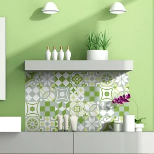 Ambiance-Live 24 naklejki na płytki | naklejki samoprzylepne na płytki – mozaika na ścianę do łazienki i kuchni | klej do płytek – patchwork zielony – 10 x 10 cm – 24-częściowy