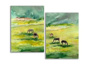 Akwarela ręcznie malowana Pejzaż górski zestaw 2 szt