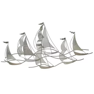 Metalowa ozdoba ścienna w stylu marynistycznym Dodaj swojemu wnętrzu marynistycznego charakteru dzięki tej wyjątkowej dekoracji ściennej. Kompozycja 3D składająca się ze srebrnych łodzi będzie dobrze się prezentować zarówno na ciemnych jak i jasnych ścianach. Całość jest wykonana z dobrej jakości metalu, co gwarantuje stabilność i trwałość. Zawieś ją nad kominkiem, szafką lub sofą i ciesz się pięknem tego ozdobnego elementy, który na pewno przyciągnie wzrok wszystkich gości. Szczegóły: Kolor: Srebrny, Złoty.