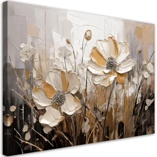 Feeby Obraz do salonu sypialni malowany, Beżowe polne kwiaty Abstrakcja 100x70cm