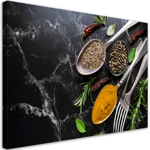 Feeby Obraz na płótnie, Marmur Przyprawy Sztućce do Kuchni 100x70cm