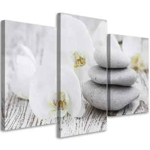 Feeby Obraz tryptyk na płótnie, Biała orchidea i kamienie 60x40cm