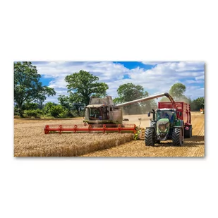 Szklany foto obraz Kombajn i ciągnik będzie idealnym wykończeniem ścian w pokoju. Połysk jaki daje szkło plus głębokie kolory są wręcz stworzone do dekoracji wnętrz. Obraz na szkle hartowanym Kombajn i ciągnik to propozycja na obraz ze zdjęcia, który odmieni wystrój domu.