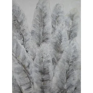Szukasz niebanalnej ozdoby wnętrza?. Wdzięczny motyw egzotycznych liści to temat przewodni ręcznie malowanego obrazu Liście Bananowca. Kompozycję wyróżnia srebrno-złota kolorystyka oraz grube warstwy farby nakładanej na płótno specjalną szpachlą malarską. Taki dodatek będzie pasował do nowoczesnych, awangardowych wnętrz, do monochromatycznej szaro-białej kolorystyki wnętrza. Obraz jest naciągnięty na drewnianą ramę i gotowy do powieszenia.