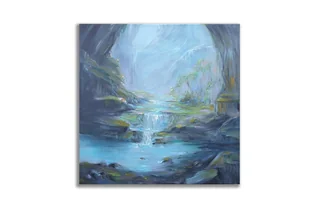 Obraz olejny 50x50 cm Wodospad Pejzaż górski oryginalny autorski