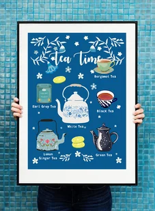 Czas na herbatę. Plakat wykonany w technice grafiki wektorowej. Uwaga! Kolory na monitorze i na wydruku mogą się różnić. Wydruk na wysokiej jakości papierze w różnych formatach. ***Bez oprawy. ...