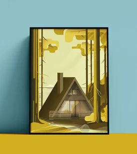 Plakat Domek typu BRDA, letni wywczas nad jeziorem w lesie