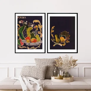 Dwie oprawione okładki czasopisma POLSKA Polskie lato, 1968 r, aut. Józef Wilkoń. Okładki w czarnych ramkach o wymiarach 30 x 40 cm ...