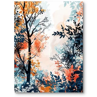 Plakat jesienny las w kolorach do salonu niebiesko-pomarańczowy