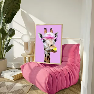 Plakat Żyrafa w różowej czapce sportowej