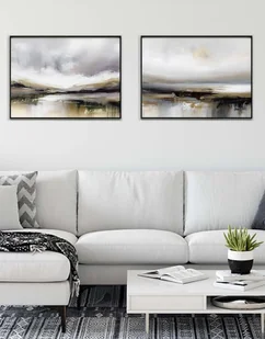 Piękny zestaw przedstawiający dwa abstrakcyjne pejzaże CENA ZAKUPU = ZESTAW 2 PLAKATÓW Plakaty wydrukowane na szlachetnym satynowym papierze o gramaturze 200, przy użyciu atramentu pigmentowego. Nie ma r ...