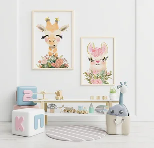 Zestaw plakatów z lamą i żyrafą plakat dla dziecka