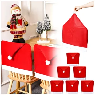 Pokrowce na Krzesła Świąteczne Dekoracja Ozdoba Święta Pokrowiec Czapka Mikołaja Zestaw 6 sztuk Twoje krzesła nigdy wcześniej nie wyglądały tak świątecznie! ...