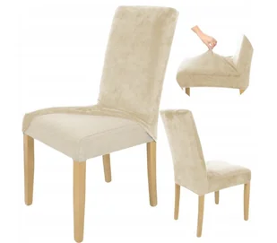 Pokrowiec Na Krzesło Welur Elastyczny Beż Kaszmirowy