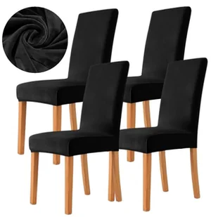 ZESTAW 4 SZT. POKROWCÓW NA KRZESŁO POKROWIEC WELUR PREMIUM AKSAMIT ELASTYCZNY CZARNY ⭐ Pokrowce marki Domidekor® wyprodukowane są z materiałów wysokiej jakoś...