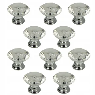 10 x Gałka meblowa okrągła Diament srebrna gałki do szuflad glamour