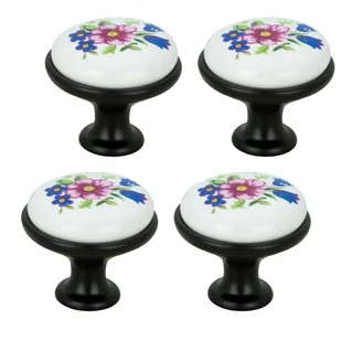 4 x Gałka meblowa okrągła czarna z ceramiką i wzorem retro kwiaty