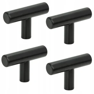 Kolor: Czarny Materiał: Stal nierdzewna Długość: 5 cm Szerokość: 1,2 cm Wysokość: 3,2 cm Rodzaj: Gałka meblowa reling Wykończenie: Matowe Ilość: 4 szt Zawart...