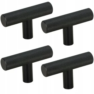 Kolor: Czarny Materiał: Aluminium Długość: 5 cm Szerokość: 1,2 cm Wysokość: 3,2 cm Rodzaj: Gałka meblowa reling Wykończenie: Matowe Ilość: 4 szt Zawartość ze...