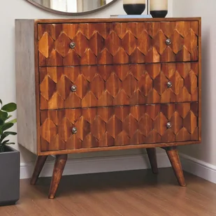 Artisan Furniture Drewniana Rzeźbiona Komoda Ananasowa w Odcieniu Kasztanowym, 3 Szuflady, Ciemnobrązowa