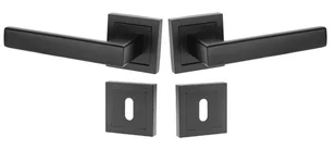 - Otrzymasz komplet klamek wewnętrznych do drzwi z rozetami w czarnym matowym wykończeniu.
