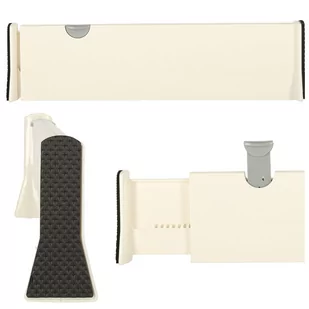 A to oznacza, że posiada on mechanizm, dzięki któremu swobodnie możesz wydłużać oraz skracać łączność jego długość. Najmniejsza długość to 38 centymetrów, a najdłuższa to 54,5 centymetrów, tak więc spokojnie zmieści się w każdej szufladzie! UNIWERSALNY DESIGN Przegroda na brzegach posiada ochronny materiał, który zabezpiecza szufladę przed uszkodzeniami, oraz sprawia, że organizer pozostaje w miejscu.