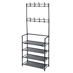 Montaż również nie nastręcza trudności. Kolor: czarny Materiał: metal i włóknina poliestrowa Wymiary: 60 x 26 x 155 cm (szer. x gł. x wys.) Grubość rurki: 16 i 9,8 mm 4 półki Wykończenie proszkowe Stabilna rama Prosty montaż Zawartość przesyłki: