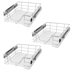 - Większa przejrzystość i porządek w szafach- 6 śrub dla optymalnego trzymania- wszystkie śruby w kolorze srebrnym, uniwersalne- możliwość elastycznego zastosowania- łatwy montaż- do standardowych szafek o szerokości 30cm/40cm/50cm/60cm (wymiary zewnętrzne)Wymiary całkowite szuflady wraz z prowadnicami (szer. x wys. x gł.):