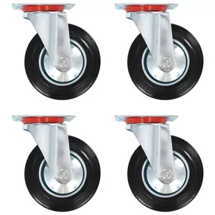 Kółka zostały wykonane z gumy, która wyróżnia się dobrą odpornością na wstrząsy i wibracje, co zapewnia płynną i cichą jazdę. Dodatkowo ich miękka powierzchnia skutecznie chroni podłogę przed zarysowaniem. Żelazna, ocynkowana rama jest wysoce odporna na rdzę, a tym samym zwiększa wytrzymałość i trwałość kółek. Co więcej, dwa kółka skrętne zostały wyposażone w podwójny hamulec, ułatwiający elastyczne sterowanie. Każde z kółek ma maksymalną nośność 150 kg.