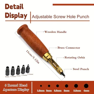 TEMU 1 Zestaw Japońskich Wiertarek Do Regulacji Śruby Z Aluminiową Oparą I Drewnianym Uchwytem, 6 Wymiennej Grubości Końcówek, Wiertarka Do Papieru Z