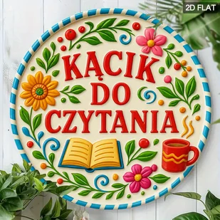TEMU 2D płaski, 1 szt. polski „ DO CZYTANIA” okrągły aluminiowy na ścianie - 7.8x7.8 cala, kolorowy kwiatowy i projekt książkowy, idealny do domu,