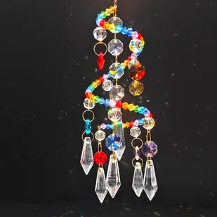 TEMU Ręcznie robiony kryształowy wiatrówka z kryształowego szkła, kolorowy suncatcher z metalowymi akcentami do dekoracji domu - Idealny na okna,