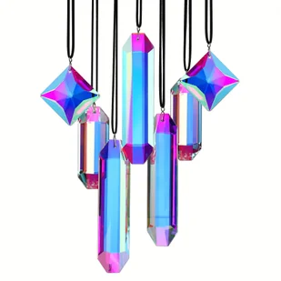 TEMU Zestaw 7 Kryształowych Pryzmatów do Łapania Słońca - Kolorowe Szkło AB Tworzące Tęczę do Okna, Dekoracje Wiszące do Wnętrz, Ozdoby Świąteczne,