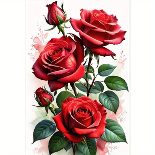 TEMU Zestaw do Malowania Diamentowego "Czerwona Róża" 5D DIY Okrągłe Kryształki na Płótnie do Dekoracji Ściennej w Domu Motyw Kwiatowy z Pełnym