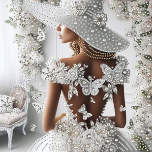 TEMU Zestaw do malowania diamentowego z białymi kwiatami, wzór dekoracyjny, częściowo kryształki Rhinestone o specjalnych kształtach, ozdoba ścienna
