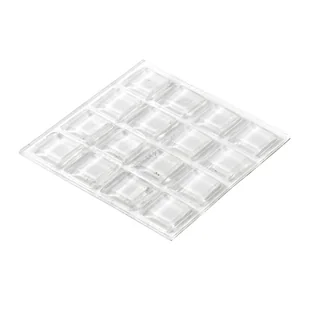 Odbojniki meblowe przeźroczyste 13x13x2mm - 16szt, firmy Hettich. Odbojnik meblowy umocowany na ścianie zabezpiecza jej powierzchnię i amortyzuje uderzenia drzwi. Posiada on miękką powłokę wykonaną z tworzywa odpornego na uszkodzenia mechaniczne. Materiał ten nie ulega niszczeniu przez długi czas użytkowania produktu. Przeźroczysty kolor sprawia, że z łatwością dopasujesz go do wnętrz.